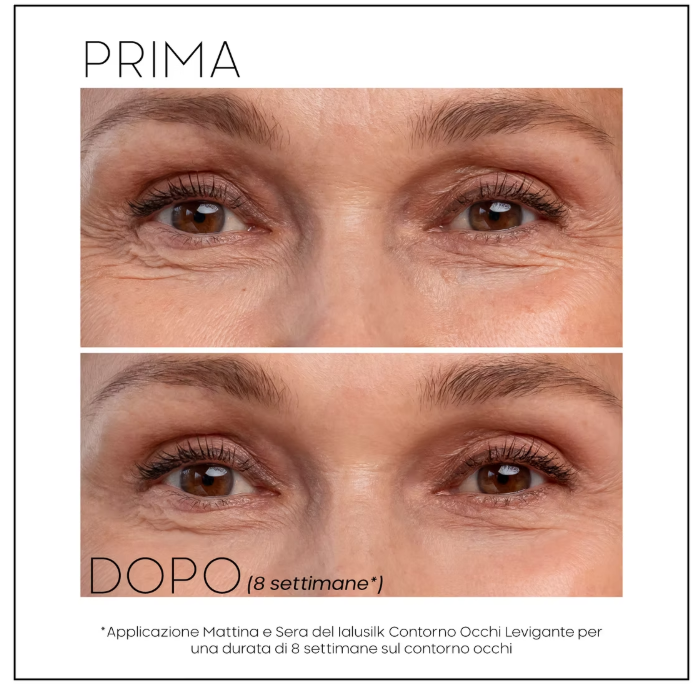 Il Contorno Occhi Levigante, con attivo concentrato Italine A® a base di Mela Annurca, un potente antiossidante, anti radicali liberi, antinfiammatorio, anti-glicazione. Riduce visibilmente i segni della fatica: contrasta gli inestetismi delle occhiaie e delle borse, ridona colorito e ravviva lo sguardo stanco.