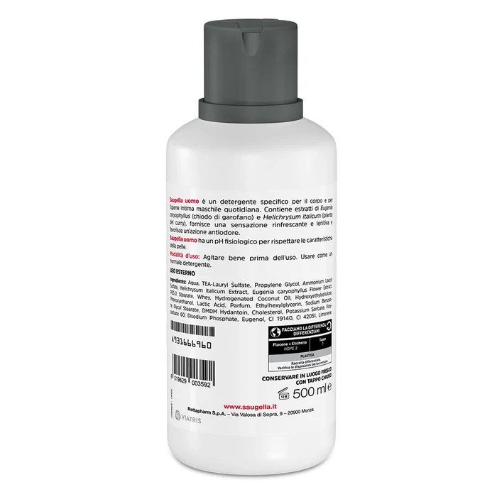 Detergente specifico per il corpo e per l’igiene intima maschile quotidiana.