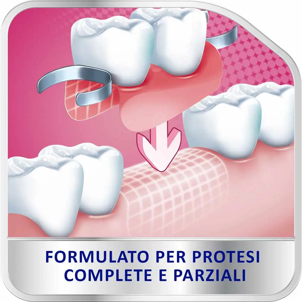 Anche se aderisce bene, la protesi può permettere infiltrazioni di particelle di cibo e ciò può provocare disagio. Ma l’azione di Polident Lunga tenuta e durata contribuisce ad ostacolare queste infiltrazioni fra la gengiva e la protesi.