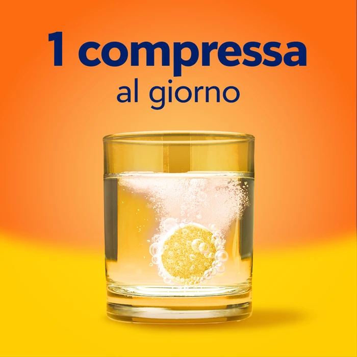 Acido L-ascorbico (Vitamina C); Saccarosio; Regolatori di acidità: Idrogeno carbonato di sodio, Acido tartarico, Carbonato di sodio; Acidificante: Acido citrico; Aroma naturale di limone; Edulcorante: Sodio ciclamato; Colorante: Giallo chinolina E104 (può influire negativamente sull’attività e l’attenzione dei bambini).