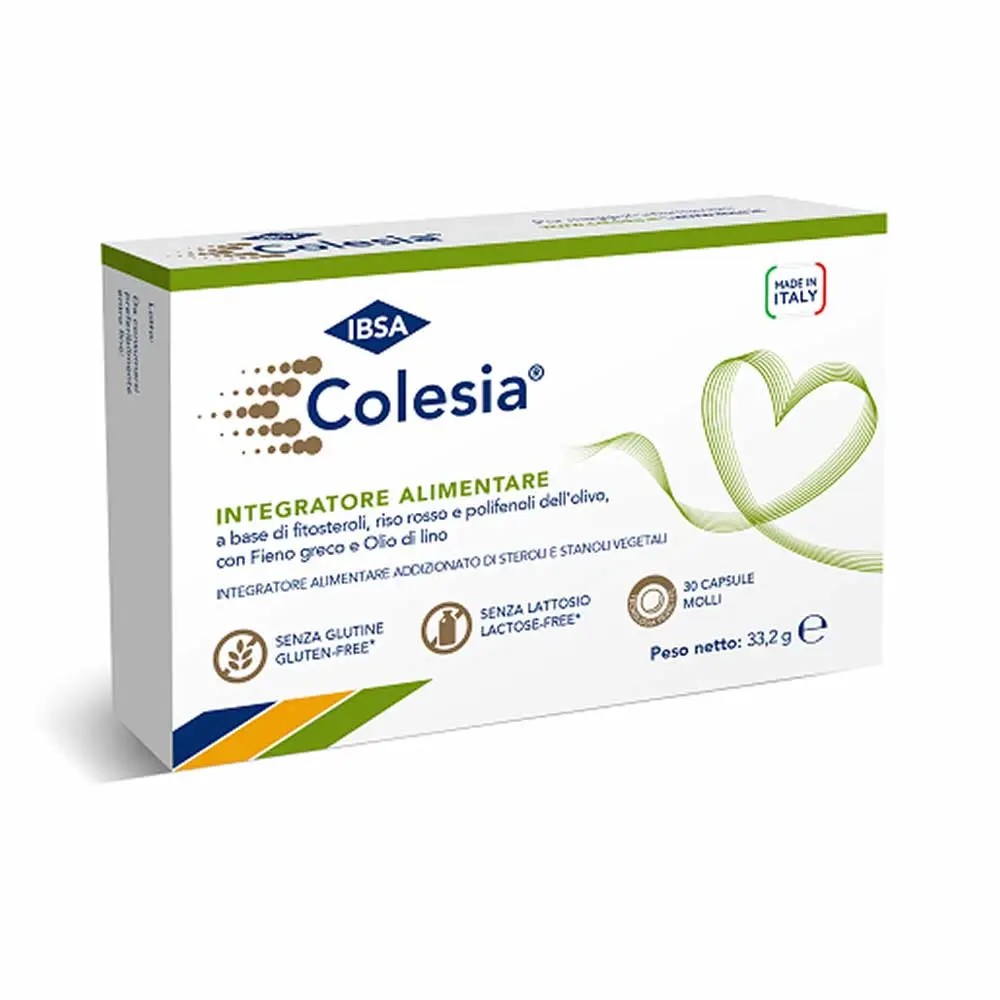Il colesterolo è un componente fondamentale del nostro organismo, importante per produrre numerosi ormoni e per la formazione delle membrane cellulari. Viene prodotto dal nostro organismo, soprattutto dal fegato, ed in parte assorbito attraverso gli alimenti. L’elevato valore di colesterolo nel sangue è uno dei fattori di rischio per l’insorgenza di malattie cardiovascolari, quali infarto e ictus. È questo il motivo per cui è consigliabile tenere i valori del colesterolo sempre sotto controllo. Colesia® contiene Fieno greco che contribuisce al metabolismo dei trigliceridi e colesterolo. Colesia® contiene olio di lino che contribuisce al metabolismo dei lipidi.