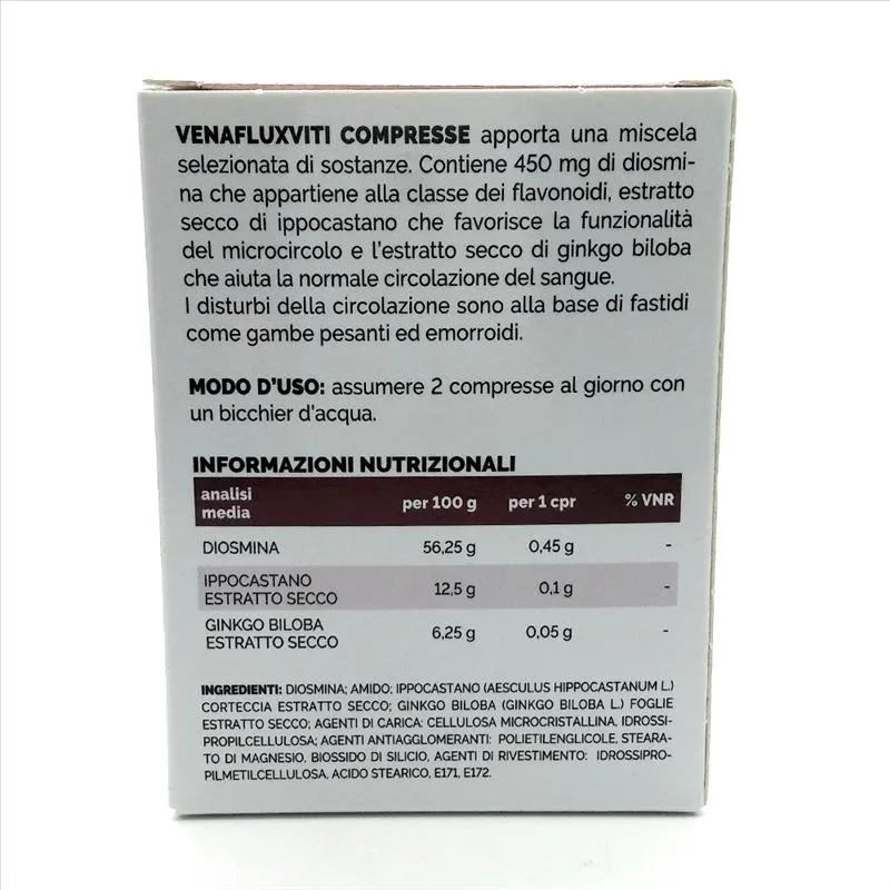 Integratore alimentare con diosmina, ippocastano che favorisce la funzionalità del microcircoloe e ginkgo biloba che aiuta la normale circolazione del sangue.